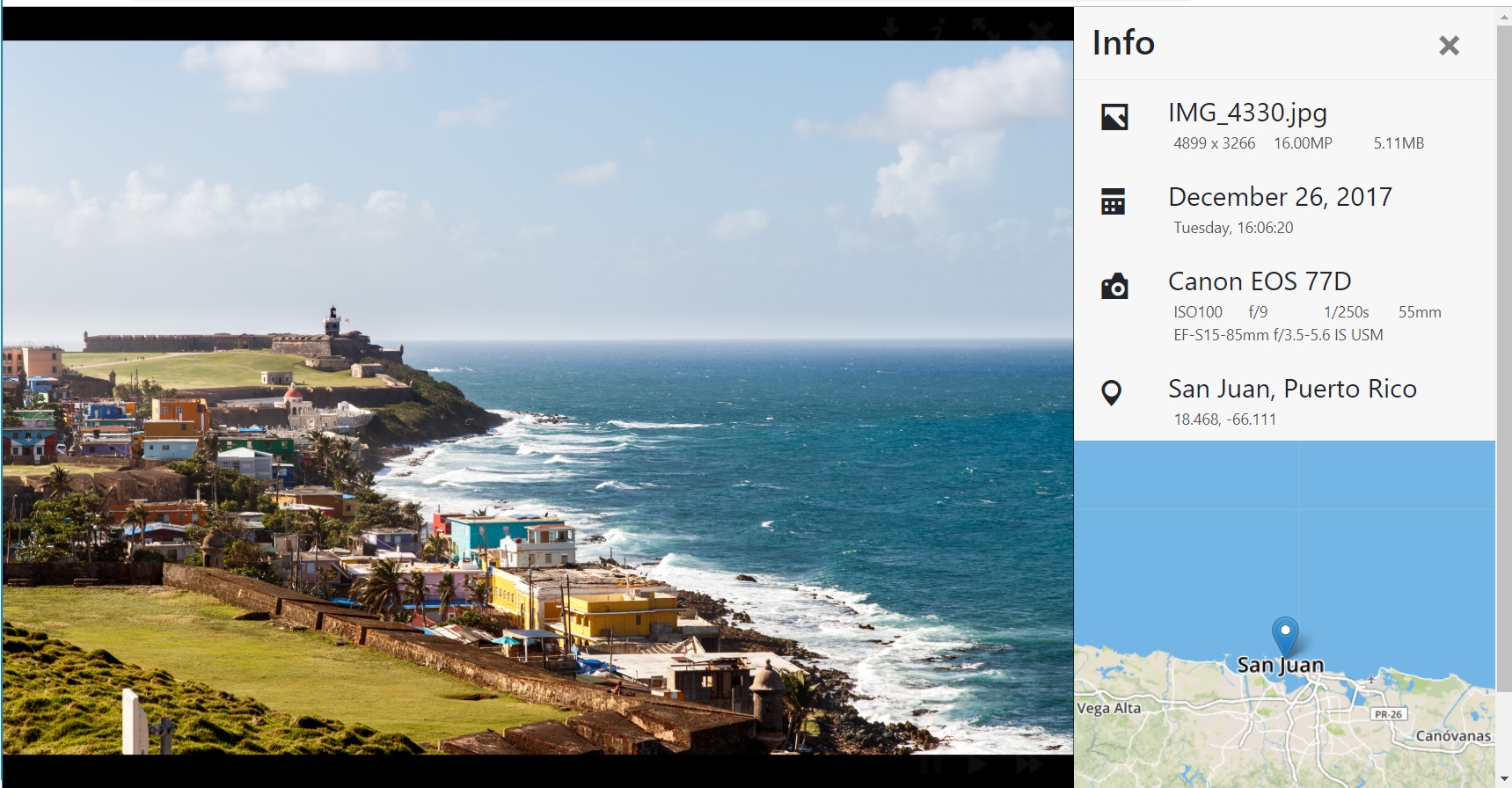 Nice photo viewer with optional information panel that shows all important information about the photo.